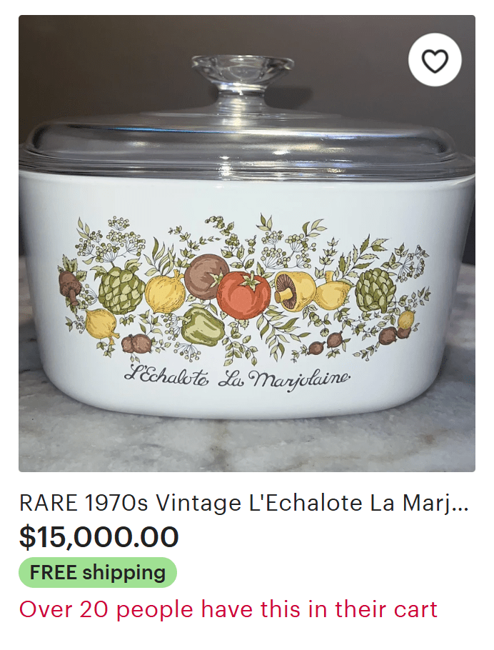 I don’t know why, I just have a hard time believing over 20 people are currently clamoring over this piece of grandma’s cookware, selling for $15,000.