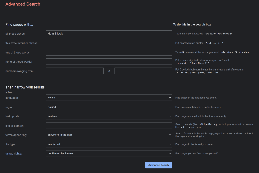I should mention that I’ve been studying the Polish language for a few years, so I felt comfortable navigating through the results. However, if this was a language I was unfamiliar with, then I would use the Chrome browser, right-click on my results page and select the “Translate to English” option. From my Polish results I was able to gather some information about Huta Silesia.