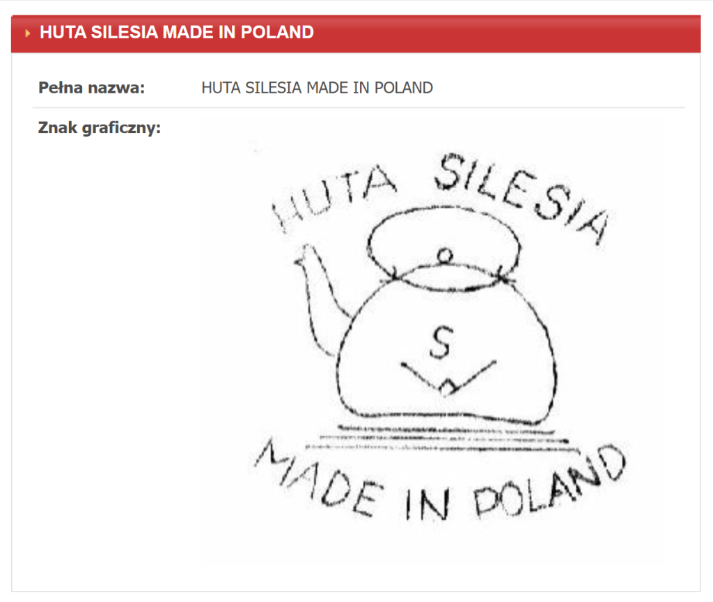 You would think this would be enough proof, but I wanted more. Using the previous method of searching Polish pages published in Poland, I ran a Google search using the terms “Huta Silesia” and “znak towarowy” (the English translation of this would be “trademark”). Lo and behold, the very first result was a database of Polish trademarks.23 There’s the tea kettle with the “S.” Beautiful.
