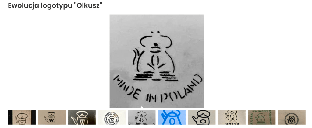 A simple search of “Olkusz” turned up results about a city in Poland. Getting closer. I added the term “emaliowany” and the first result was a website for a company named “Emalia Olkusz S.A.”28 The logo was a modern style tea kettle with an O inside. Promising. The site has a nice “Informacje” (Information) section and in that section, a page about the evolution29 of the logo. It was almost too easy.