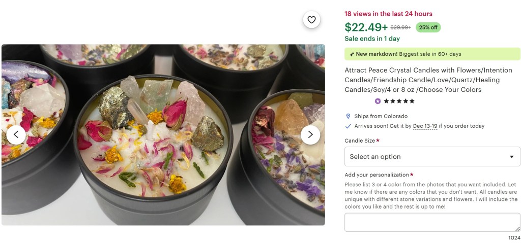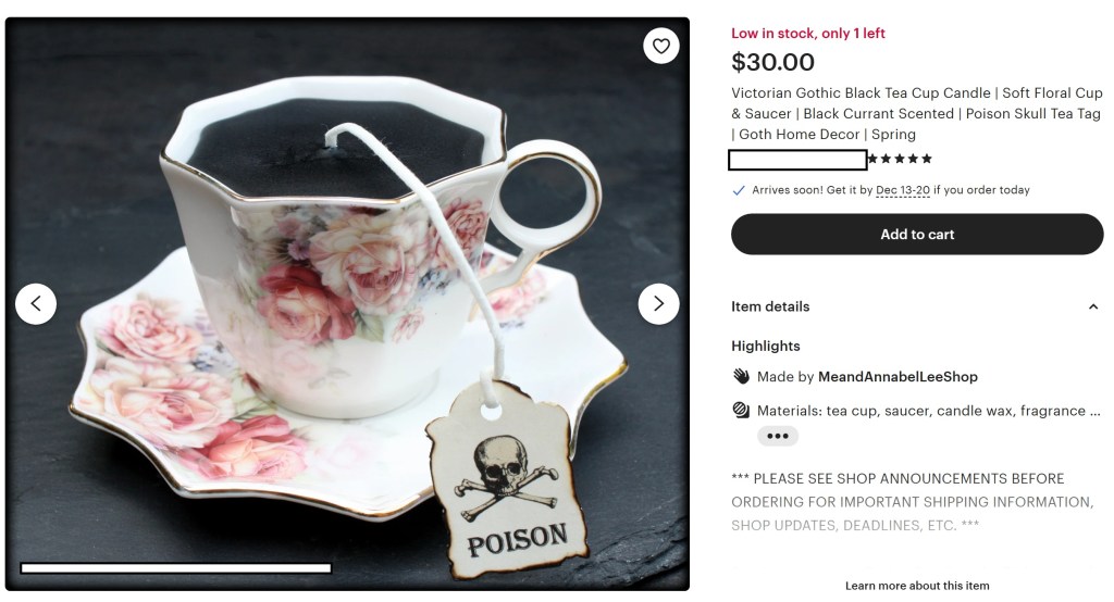 - The candles aren’t cheap. Okay, here’s the deal with this. This is an incredibly expensive hobby. It’s even more expensive when you go into business. High quality candle supplies costs money. Testing and perfecting candles costs money. While sometimes beginner sellers on Etsy will sell at a loss in order to get sales, a cheap candle says, to me, that either they used cheap supplies and aren’t serious or it’s not handmade, i.e. it’s a white label candle.